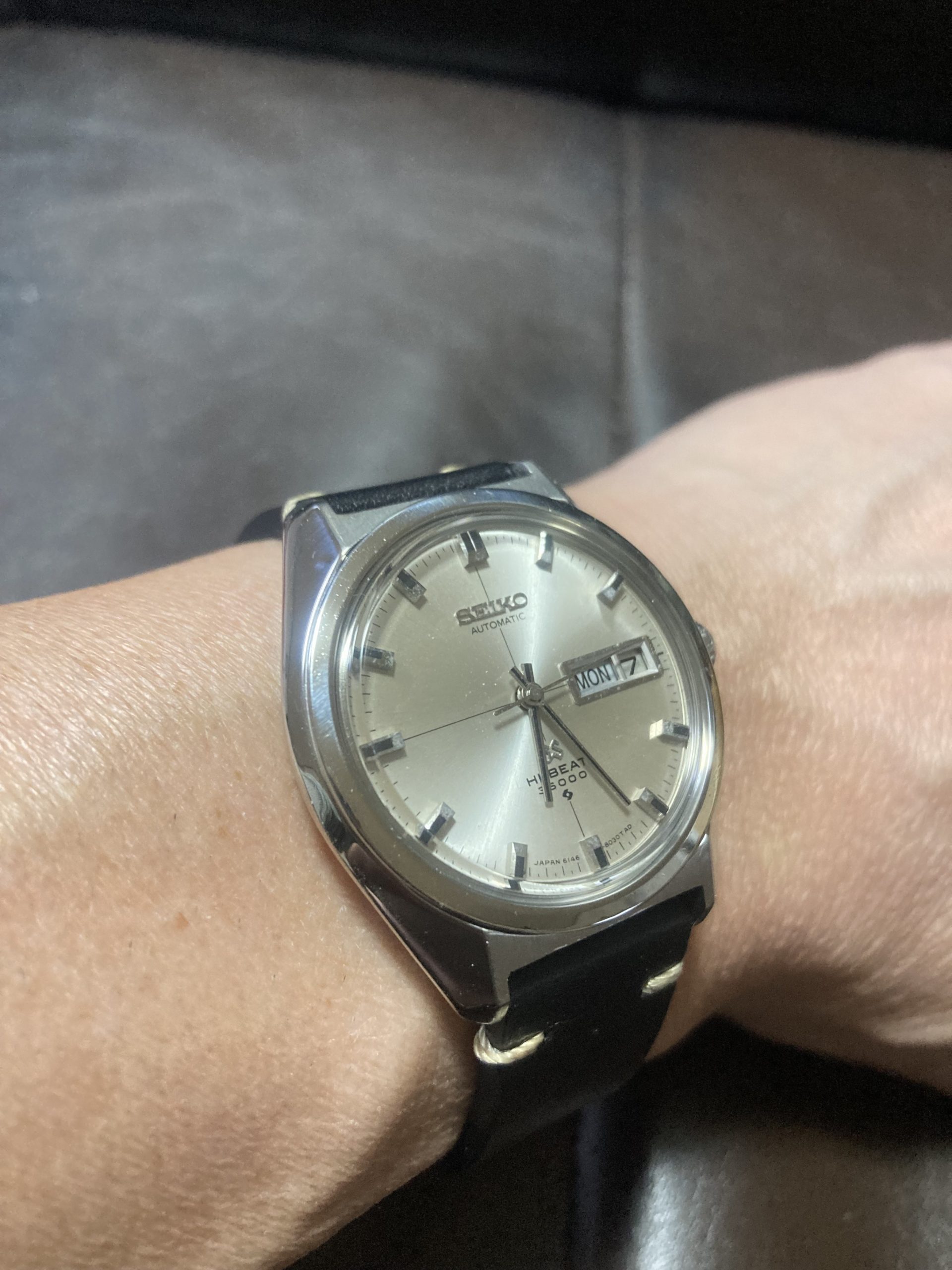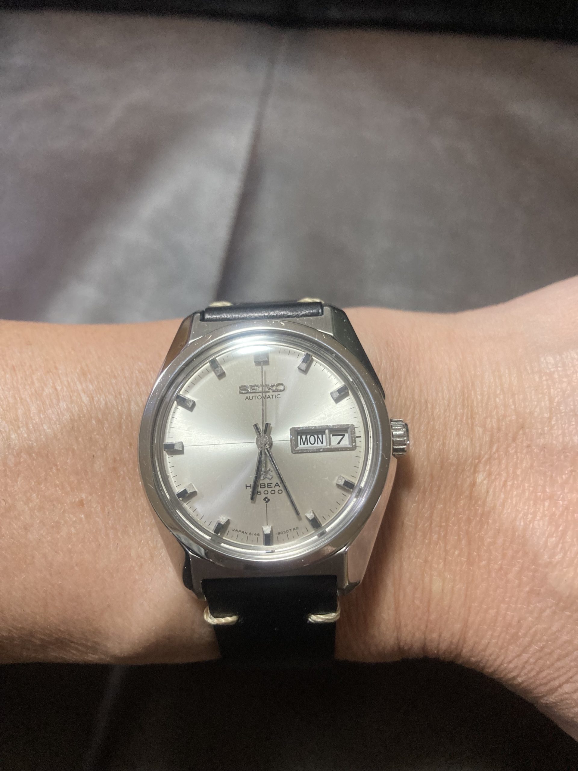 →以前からグランドセイコーのヴィンテージが欲しかったのですが、クロスラインのはいった文字盤がかっこよかったので選びました。