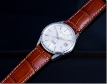 シルバー文字盤で飽きのこないシックな風合いもたまりませんね。